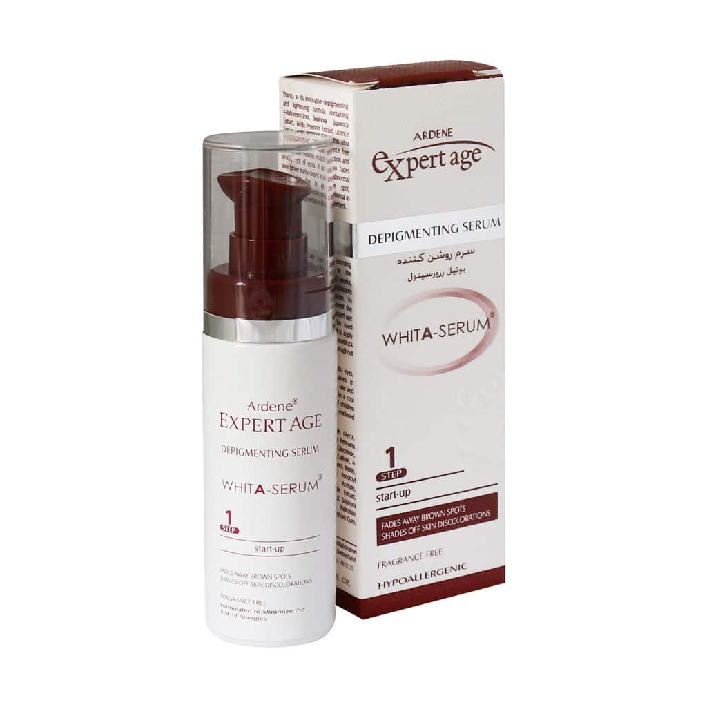 اختلالات هیپرپیگمانتاسیون (لک های تیره پوست) از مشکلات شایع پوستی هستند که زیبایی را تحت تاثیر قرار می دهند. به اشکال مختلف بروز می کنند و ممکن است سبب ایجاد لک های قهوه ای رنگ پوست شوند. به دلیل تاثیرات منفی هیپرپیگمانتاسیون و لک های ناشی از آن بر پوست، آردن، این سرم را تولید کرده است. سرمی با فرمولاسیون نوین، تخصصی و پیشرفته که باعث کاهش لک های پوستی می شود. این فرآورده دارای مواد موثری شامل بوتیل رزورسینول، عصاره گل مینای چمنی، عصاره شیرین بیان و عصاره سافوراژاپونیکا می باشد. سلول های بنیادی نوعی سیب، ویتامین های E ،A ،B3 ،C، پروتئین های سویا، ابریشم، لسیتین و گلیسرین نیز در این محصول موجود است.
