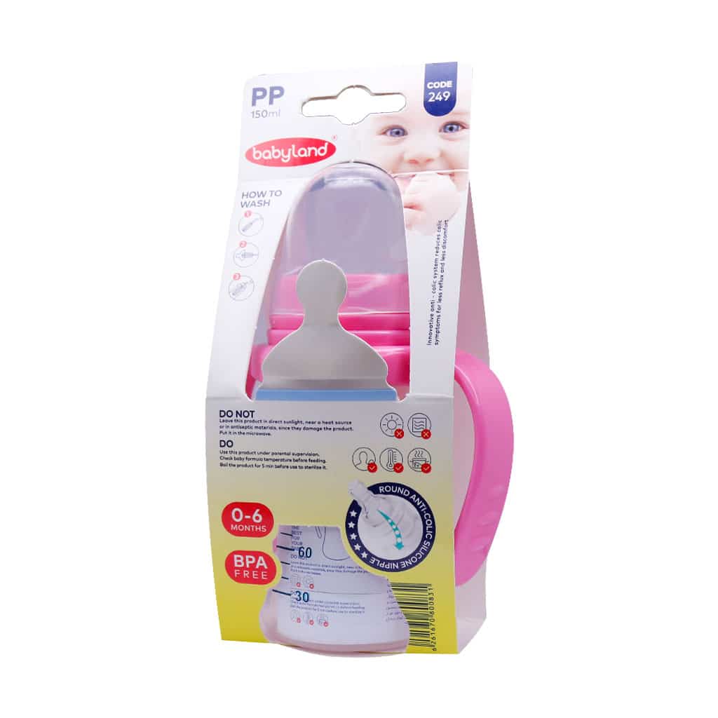 ویژگی های شیشه شیر دسته دار آنتی کولیک بیبی لند کد 249
