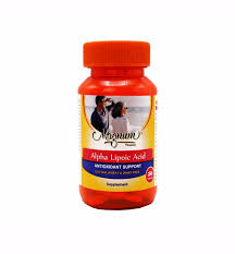 آلفا لیپوئیک اسید مگنوم ویتامینز در هر قرص معادل 300 میلی گرم ترکیب زیست فعال آلفا لیپوئیک اسید را فرموله کرده است. آلفا لیپوئیک اسید (ALA)، نوعی اسید چرب ارگانوسولفور دار با خاصیت آنتی اکسیدانی است که به طور طبیعی در میتوکندری سلول ها از اسید کاپریلیک ساخته می شود. این آنتی اکسیدان هم در فاز چربی و هم فاز آبی دارای فعالیت است. همچنین آلفا لیپوئیک اسید کوآنزیم واکنش هایی است که با تجزیه مواد مغذی در تولید انرژی در چرخه کربس نقش دارند.