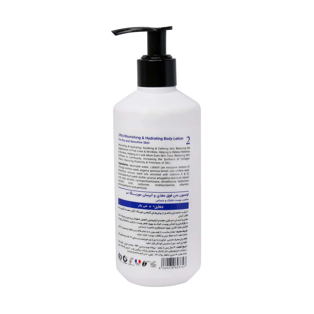 لوسیون بدن آبرسان و فوق مغذی 2 مورینگا امو مناسب پوست خشک و حساس است. این لوسیون با آبرسانی به پوست موجب تسکین و آرام شدن هرگونه التهاب، خشکی و کشیدگی پوست میشود. لوسیون فوق مغذی و آبرسان مورینگا با ترکیب انحصاری خود به نام روغن لافا کاهش خطوط ریز و چین و چروک و کمک به رفع قرمزی و خشکی پوست را نیز به دنبال دارد. ترکیب لافااویل شامل روغنهای گیاهی مورینگا، آرگان، هسته انگور و دانه آفتابگردان میشود. این ترکیبات معجزه آسا همچنین باعث بهبود استحکام و خاصیت ارتجاعی، افزایش تولید کلاژن و بازیابی درخشندگی پوست میشوند. مطالعه مقاله “نحوه صحیح استفاده از مرطوب کننده” را پیشنهاد میکنیم.