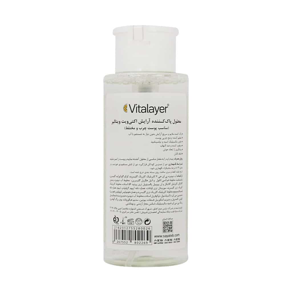 محلول پاک کننده آرایش اکتی ویت ویتالیر حاوی سالیسیلیک اسید و نیاسینامید یک محصول موثر برای پاکسازی صورت از ترکیبات آرایشی و آلودگی است. این محصول با جذب آلودگی‌ها و ترکیبات چربی، باعث جدا شدن آنها از پوست و پاکسازی پوست می‌شود. همچنین با داشتن ترکیبات موثر مرطوب کننده و ضد التهاب پوست بوده و بدون نیاز به شستشو با آب تمامی آلودگی‌ها و آرایش را از روی پوست صورت شما پاک می‌کند. میسلار واتر اکتی ویت ویتالیر ضمن داشتن ترکیبات آبرسان در کاهش چربی پوست و ایجاد جوش موثر عمل می‌کند.