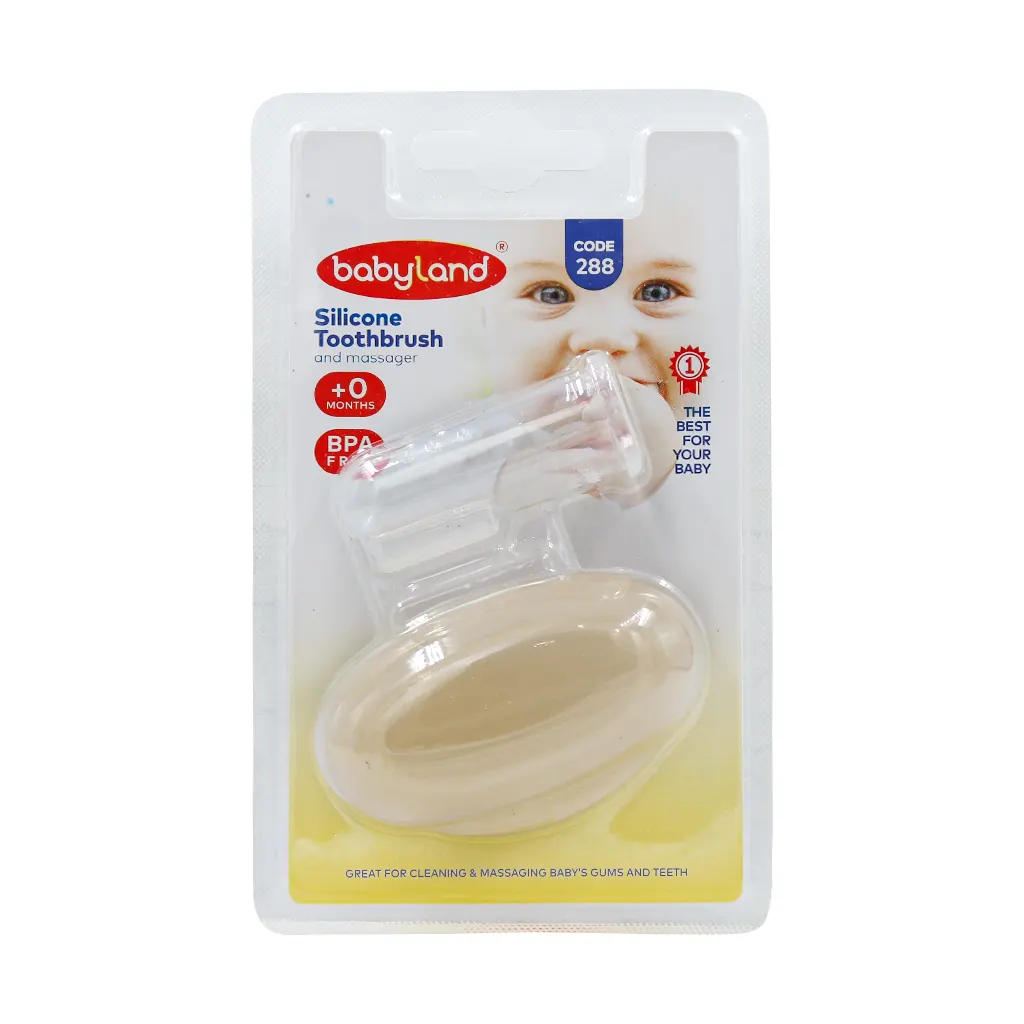 مسواک سیلیکونی بیبی لند با طراحی منحصر به فرد خود همزمان با تمیز کردن لثه و دندانهای نوزاد، امکان ماساژ لثهها را در دوره ی رویش دندانها فراهم میکند. از آنجایی که مسواک زدن برای همه حتی نوزادان ضروری شمرده میشود، انتخاب یک محصول مناسب و با کیفیت الزامی است. مسواک کودک بیبی لند ساخته شده از سیلیکون نرم بوده که دهان و لثه کودک شما را زخم نمیکند. والدین میتوانند انگشت خود را وارد محفظه ی مسواک کنند و به داخل دهان نوزاد برده و لثه ی او را که در حال دندان در آوردن و خارش است ماساژ دهند و یا بعد از خوردن شیر و شربت آهن جهت جلوگیری از سیاه شدن دندان آن را تمیز کنند. مسواک سیلیکونی بیبی لند دارای قاب محافظ است که بعد از استفاده و استریل کردن مسواک، میتوان آن را داخل محفظه قرار داد.